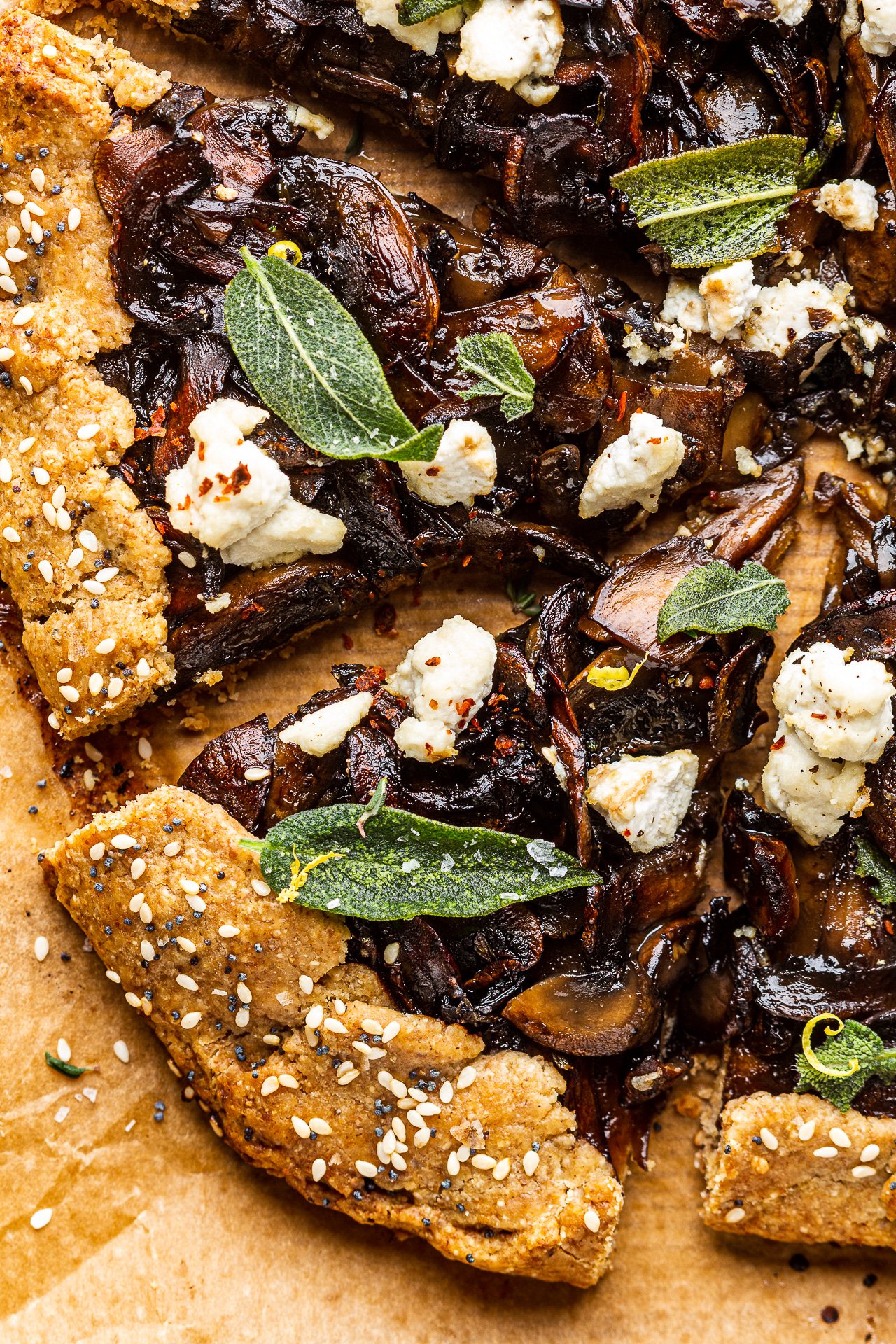 Instead I topped it with some vegan ricotta towards the end of the baking time for that creamy contrast. You are of course welcome to add a creamy base, especially if you are planning to scale this mushroom galette up and make it into a centerpiece. I recommend flavouring it with roasted garlic and thyme to complement the mushrooms on top.
