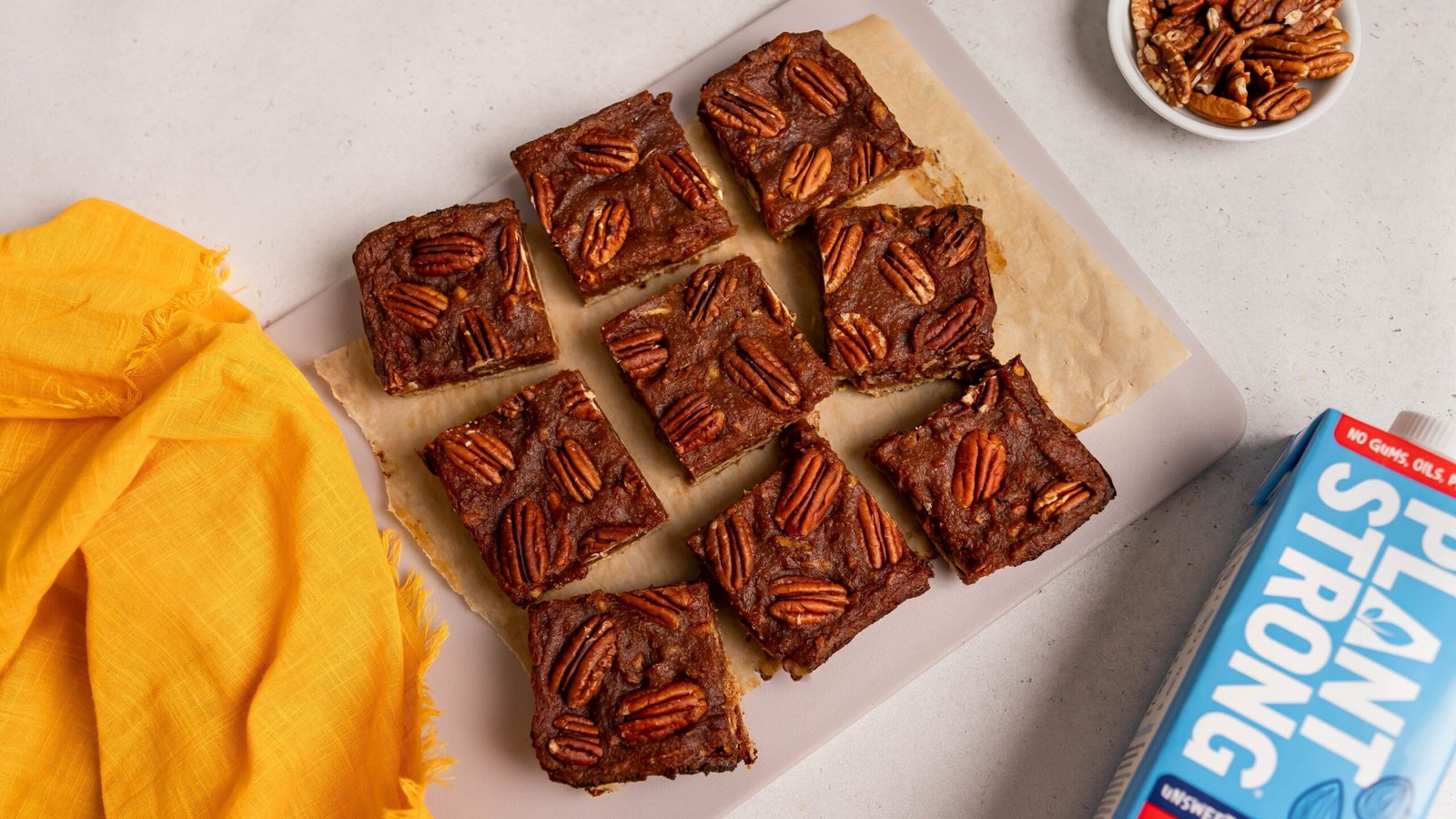 These whole food, plant-based Pecan Pie Bars are the perfect way to enjoy a classic holiday favorite in a healthier, refined sugar-free form. Made with PLANTSTRONG Almond Milk, these rich, chewy bars capture the delicious flavor of traditional pecan pie with wholesome ingredients and no added oils or refined sugars. Easy to make and filled with plant-powered goodness, they’re an ideal treat for any holiday gathering or cozy dessert craving. Get ready to wow family and friends with this naturally sweetened, guilt-free twist on a beloved seasonal dessert!